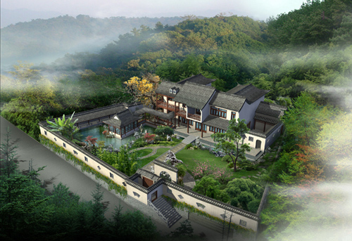 1、中式庭院: