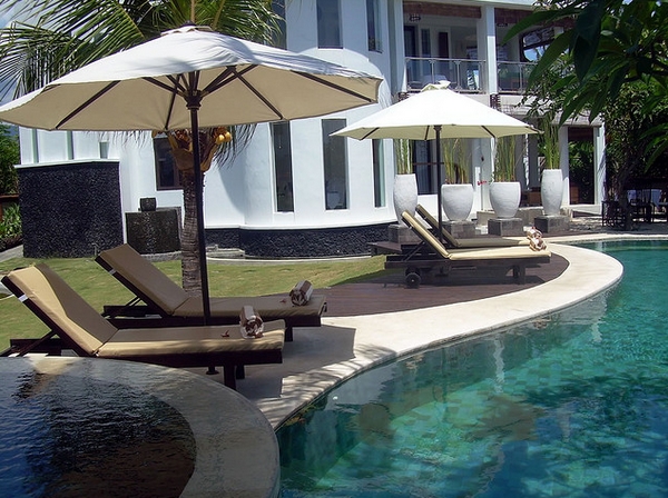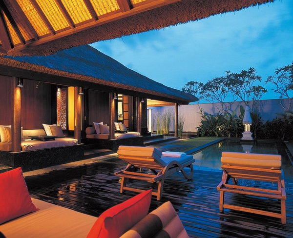 泰式三角靠垫,放置在低矮的藤椅中,不经意地让你放下身段,随性坐卧。让人完全身处自然之中,清新的空气,涓涓细流;在这样的环境中可以随心所欲,尽情玩耍。清澈的游泳池搭配上凉亭、遮阳伞休闲躺椅;