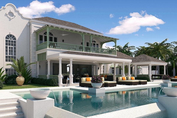 东南亚风格花园很大的特点是还原极自然的风情,给人以随性、热情奔放的感觉,遮阳、通风、采光等条件的关注,且注重对日光和雨水的再利用,从而达到节省能源的效果。所以,外观一般比较通透和清爽,例如百叶式的白色外墙,绿色的墙面。此外,遮阳的处理也是东南亚建筑的特色。