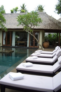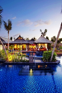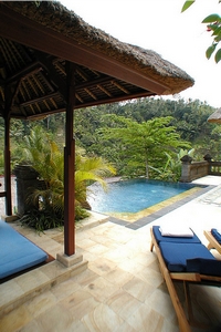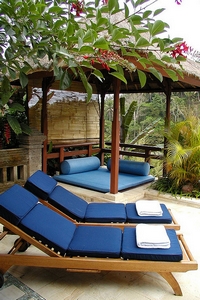 泰式三角靠垫,放置在低矮的藤椅中,不经意地让你放下身段,随性坐卧。让人完全身处自然之中,清新的空气,涓涓细流;在这样的环境中可以随心所欲,尽情玩耍。清澈的游泳池搭配上凉亭、遮阳伞休闲躺椅;